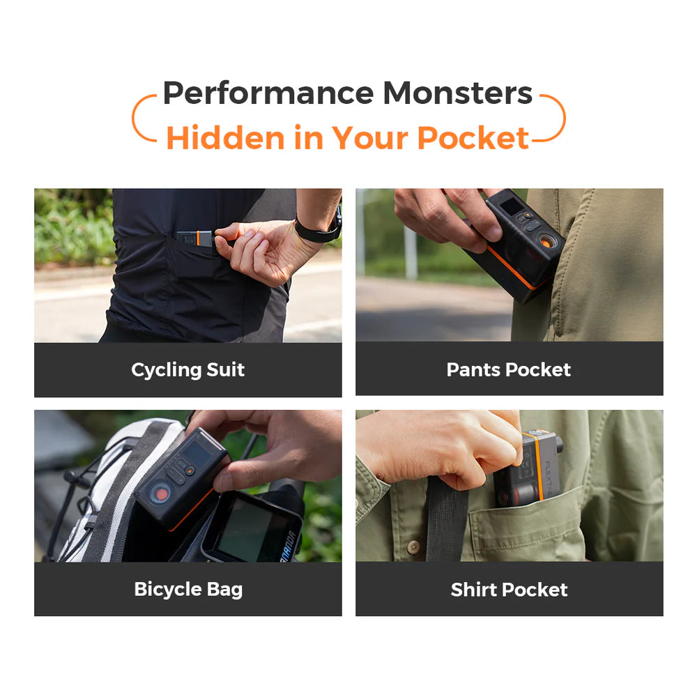 Tiny Tire Pump 200 posiada wbudowaną funkcję tylnego światła, która zwiększa bezpieczeństwo podczas jazdy. Nawet przy 4–6 godzinach pracy światła tylnego, bateria nadal pozwala na kilka pełnych pompowania opon. Trzy tryby oświetlenia dopasowują się do różnych warunków drogowych.
